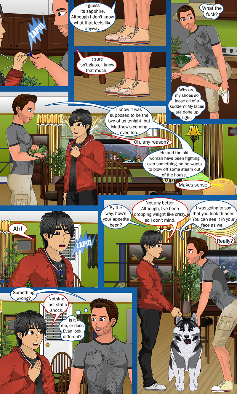 “That piece of the Fox keeps doing what it does best even when it’s far away from him. Touching it seems to accelerate their changes. Kyle’s feet shrink, and Evan’s face changes shape. On the bright side, Evan, if you don’t get rid of it, you will keep losing weight (just in a way you don’t want).”